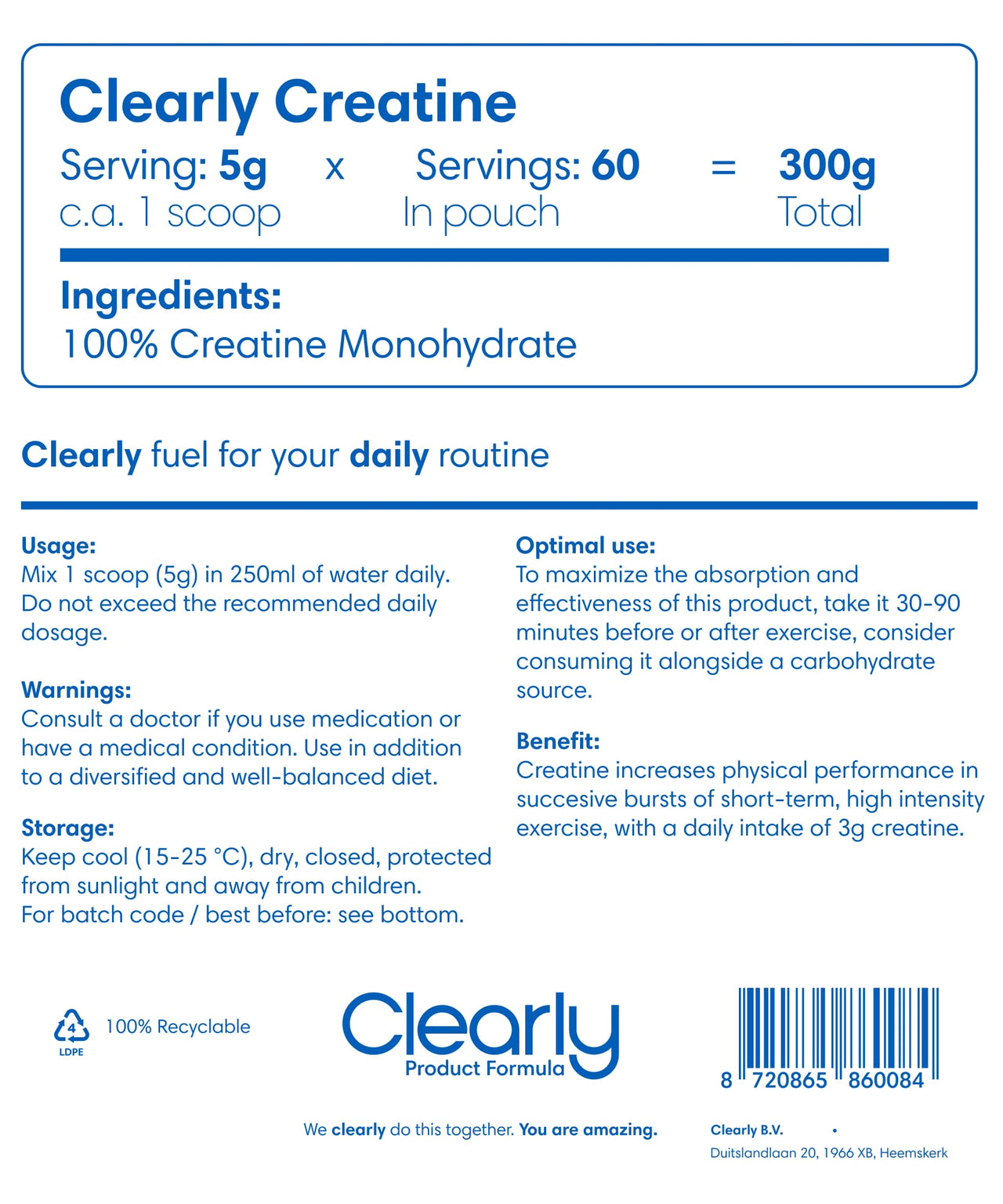 La nostra creatina è composta al 100% da creatina monoidrato pura, senza alcun additivo. Efficace, pulita ed accessibile.